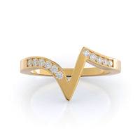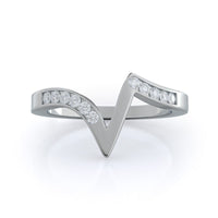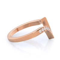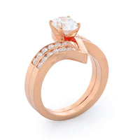The Tapered Diamond Engagement Ring was a hard one to match because of its bypass setting. But we think we crafted the perfect matching wedding band with this design that copies the diamond ring's angles. The pave wedding band looks a little like its hugging the other ring, and the result is a stylish stack she'll want to show off daily.