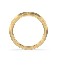 Featuring a 2mm knife edge, this modern wedding band is designed to sit perfectly with our Tapered Knife Edge Hidden Halo Engagement Ring. Set in gold.