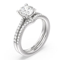 This curved 2mm wedding band is perfectly designed to compliment our tapered pave hidden halo diamond ring.