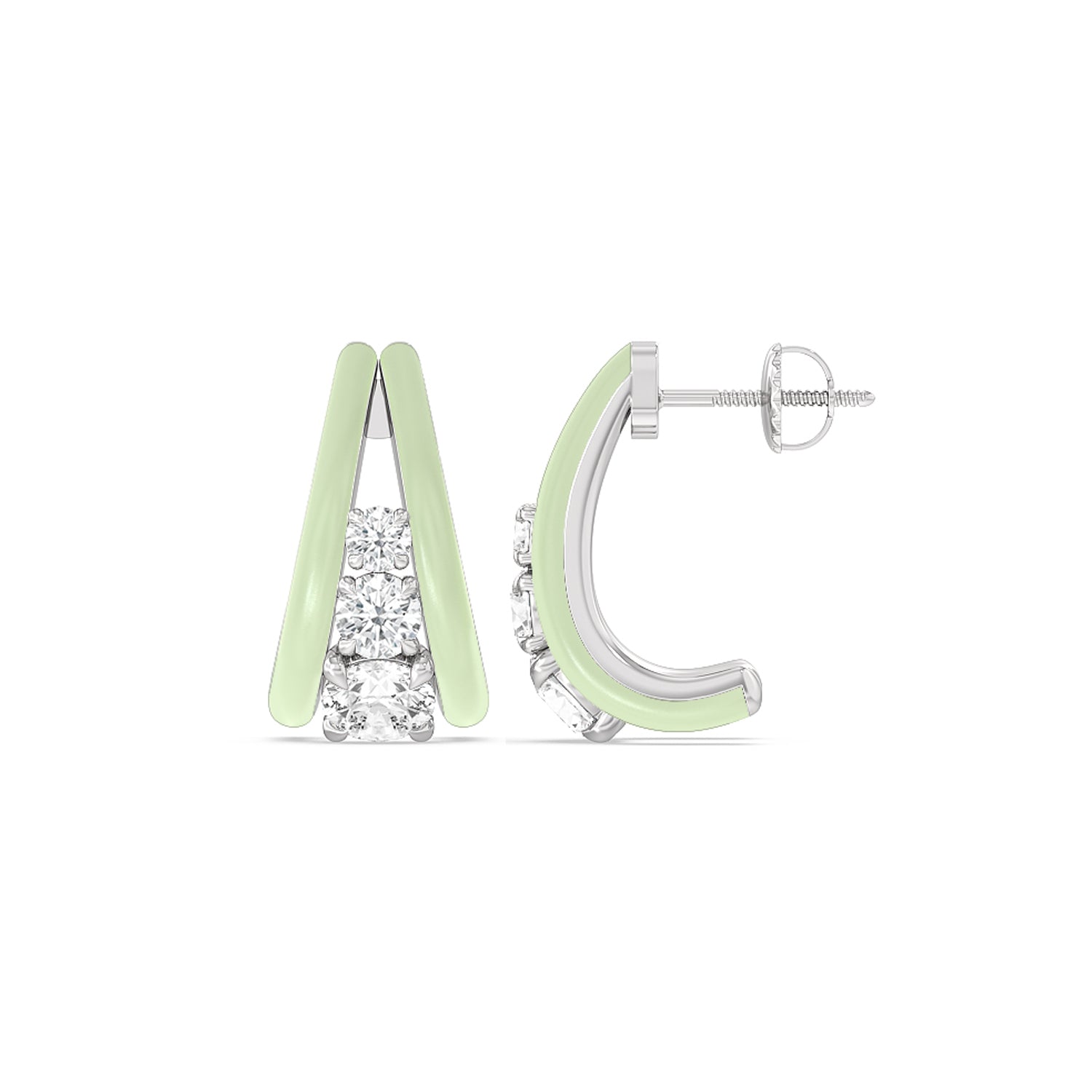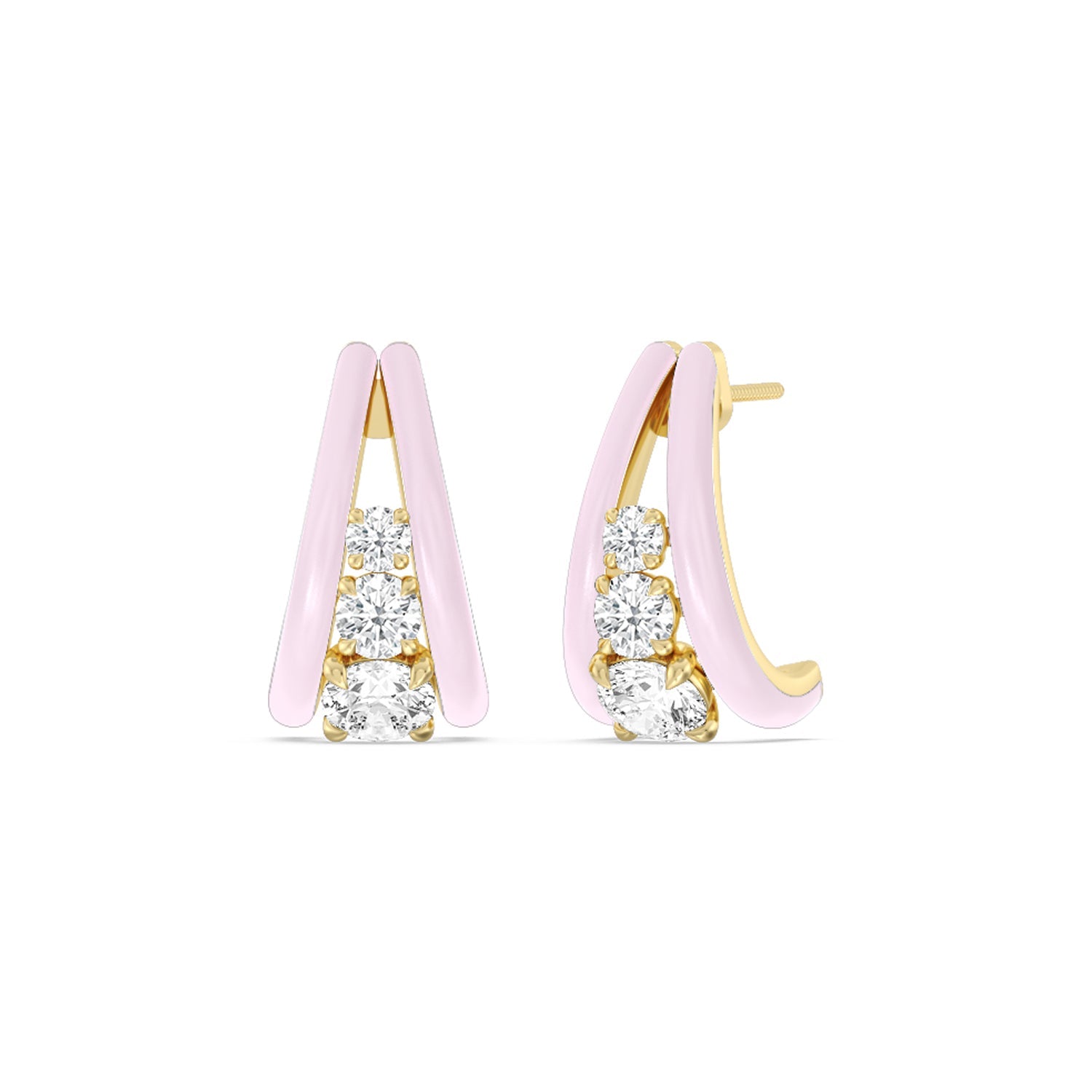 A true statement piece, these diamond ceramic earrings can be your way to add playfulness into your wardrobe. The c-shaped half-hoops feature round diamonds in tapering sizes. These earrings look and feel delicate and feminine while also being bold and unique.