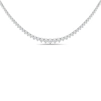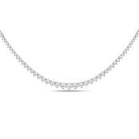 This necklace is bound to be a treasured piece of jewelry. It features a gorgeous line of brilliant-cut diamonds, gently and gradually tapering in size, with the largest at the center. Each diamond is secured on a three-prong basket. The timeless and enduring elegance of this piece gives you the flexibility to wear it on its own, layer it or pair it with other jewelry pieces.