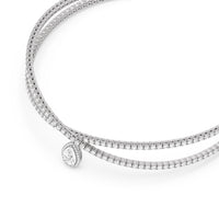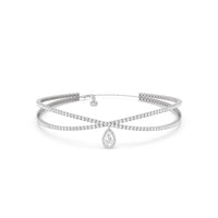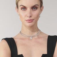At the center of the choker lies a breathtaking pear or teardrop-shaped diamond delicately nestled in a crossover pattern. The diamond, meticulously chosen for its exceptional quality and brilliance, glisten and sparkle as they catch the light, creating a dazzling display of radiance.