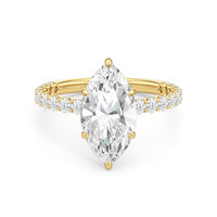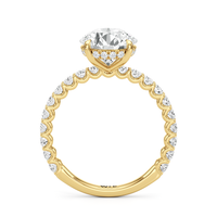 Ethereal by design. This ring reimagines the classic solitaire silhouette with U-cut side stone settings and a hidden halo set discreetly in the basket. The open, airy setting welcomes light from all angles, creating layered brilliance and effortless shine.