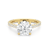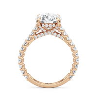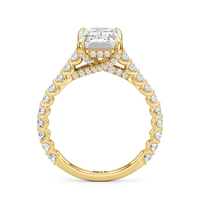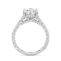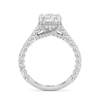 The new classic. This diamond ring elevates tradition with its crossover bridge that transitions into refined prongs. The U-cut side stone setting draws focus to the open design that maximizes light return and fire, delivering unrivaled brilliance.