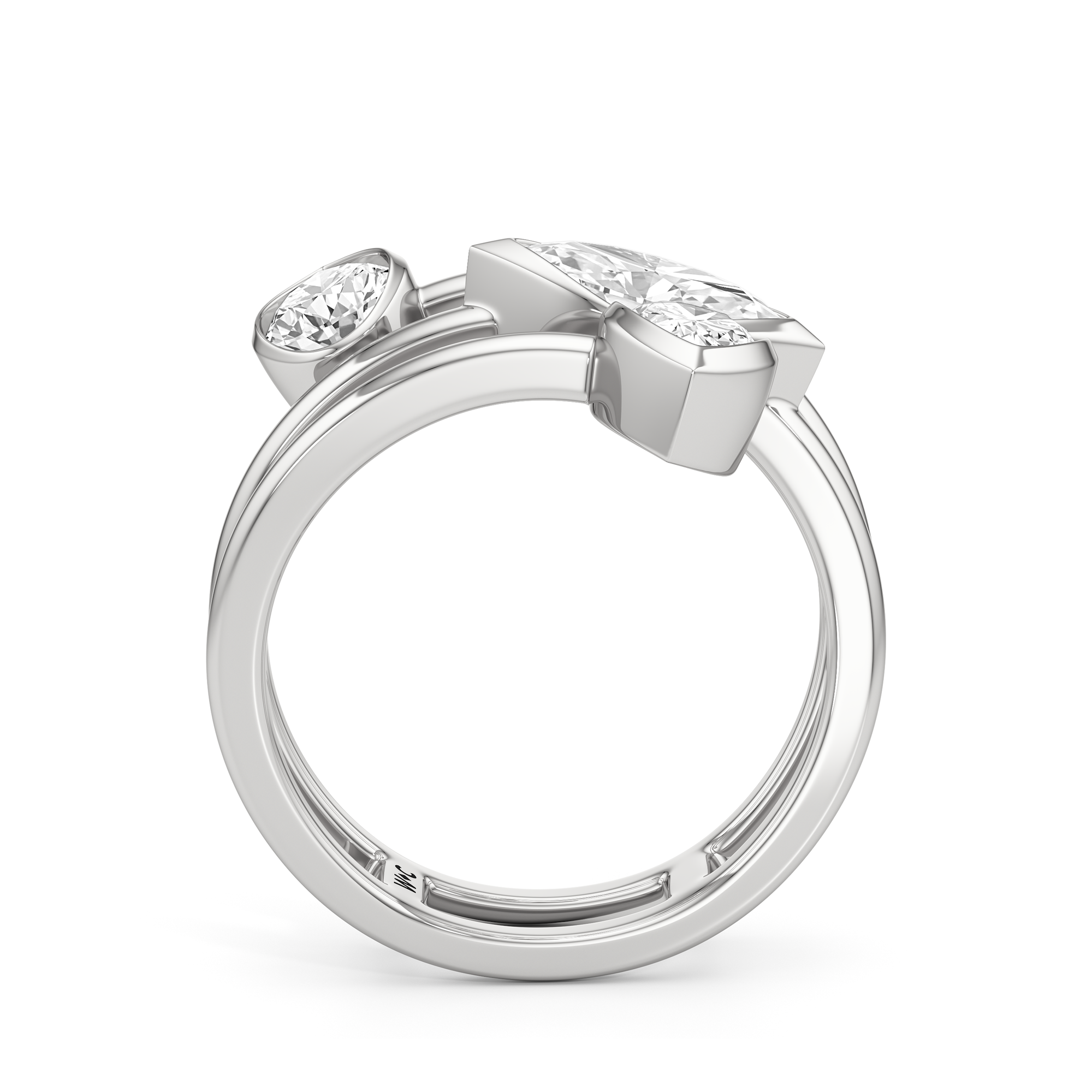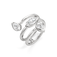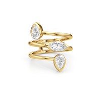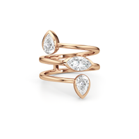 Two pear diamonds and a marquise wrap the finger in a soft spiral. Bezel-set edges create a smooth, modern profile. A sculptural piece that feels effortless to wear.