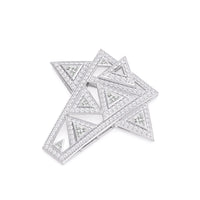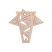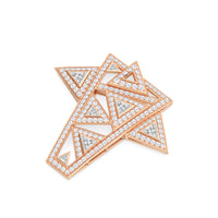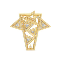This is a striking homage to the Art Deco era, where bold geometry and exquisite craftsmanship converge. Inspired by the timeless symbolism of the triangle, representing strength, harmony, and transformation. Masterfully crafted in gold, the brooch features a dynamic arrangement of triangular forms, accented with brilliant-cut diamonds and sleek, linear detailing. The interplay of polished and textured finishes enhances its dimensionality, while the pavé-set stones evoke the elegance of the Jazz!