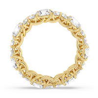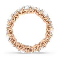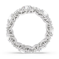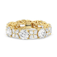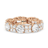 Indulge in the allure of the Botanical Eternity Ring. It features a tactile yet streamlined floral pattern of meticulously selected diamonds, each securely mounted on a cross-over prong basket that mimic the look of vines in a garden. Inspired by the delicacy of a flourishing garden, this eternity ring carries serene beauty.