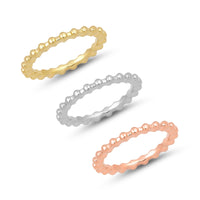 The Beaded Stacker Set is chic and bold. It includes a trio of rings in rose gold, white gold, and yellow gold, each with a beaded silhouette. This trio is not only a trendy gift, but it works as a classic staple to add to any jewelry collection.