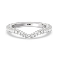 This curved diamond set wedding band is perfectly contoured to complement our heritage baguette three stone and peekaboo accent engagement ring for a simple and sophisticated look.