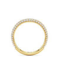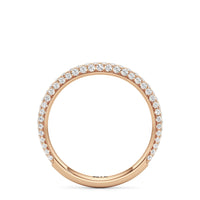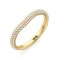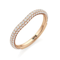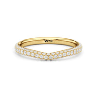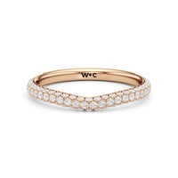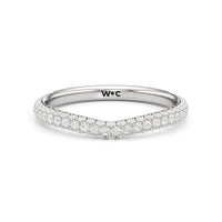 This curved diamond set wedding band is perfectly contoured to complement our The Frankie Three Stone Diamond Wedding Band for a simple and sophisticated look.