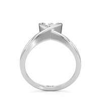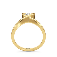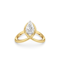 A pear-shaped diamond set on a clean chevron band with a modern semi-bezel. Sharp lines and soft curves create a sleek, wearable look that stacks easily or stands on its own.