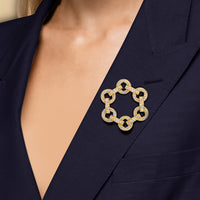The Bond Circle Brooch is a dynamic expression of connection and versatility, inspired by the three-dimensional form of our With Clarity emblem.The designs reflect modern elegance, marked by intertwined elements, seamless curves, and minimalist yet meaningful forms that echo the timeless nature of love and loyalty. Whether it’s the subtle interlocking bands that represent unity or the delicate curves that speak to a relationship’s natural flow, the Bond Collection brings together sophistication and sentiment in perfect harmony. This brooch is also available as part of a trio, known as The Bond Brooch.