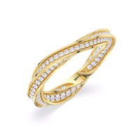 Echoing the fluidity of a möbius loop, the band’s sculptural design creates a seamless, unending flow of brilliance. Micro-pavé diamonds trace its contours, enhancing its luminous elegance from every angle.