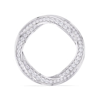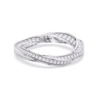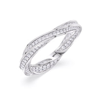 Echoing the fluidity of a möbius loop, the band’s sculptural design creates a seamless, unending flow of brilliance. Micro-pavé diamonds trace its contours, enhancing its luminous elegance from every angle.