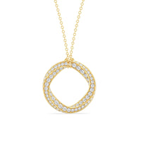 The Bond Pendant Necklace is a luminous embodiment of connection, showcasing our signature With Clarity diamond emblem within its sculptural form. Suspended from a refined cable chain, the pendant is adorned with intricately set micro-pavé diamonds, radiating a brilliance that speaks to impeccable artistry. Designed for versatility and everyday elegance, this piece effortlessly balances modern refinement with timeless allure.