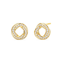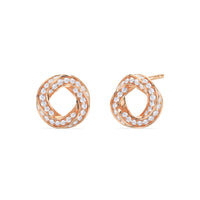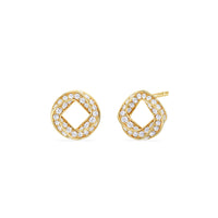 The Bond Studs are a sculptural expression of infinite connection, inspired by the three-dimensional form of our With Clarity emblem. Showcasing the emblem’s signature geometry—a diamond shape embraced within a perfect circle—each stud symbolizes harmony, unity, and enduring brilliance. Drawing from the fluidity of a möbius loop, the design creates a seamless, flowing structure that reflects the infinite nature of love and clarity. Accented with meticulously set micro-pavé diamonds, these studs radiate understated elegance, capturing light from every angle. Timeless yet modern, The Bond Studs offer a refined statement of meaning and artistry, designed to be cherished for a lifetime.
