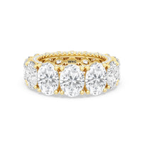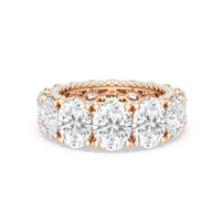 Shining from end to end, let this diamond eternity ring serve as a testament to your unbroken bond. This beautiful ring is adorned with oval diamonds that taper in size as they reach the back of the shank. Tiny round diamonds trace the inner edge of the shank, offering a glow that shines brightly now and forever.
