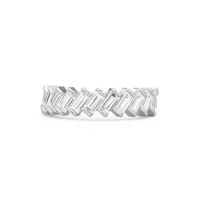 A vision of edgy elegance. This ring features a stepped row of step-cut diamonds tracing half of its circumference. The baguette diamonds are set on half bezels, allowing ample light to enter from different angles while ensuring protection against knocks and daily wear.
