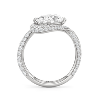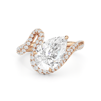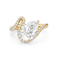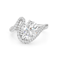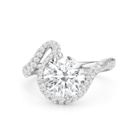 This rings flowing lines sweep gracefully, cradling a diamond as if caught mid-motion. Petite diamonds trace the waves of metal, ensuring every curve leads to light.