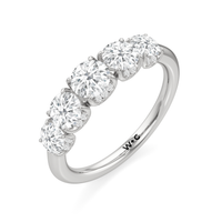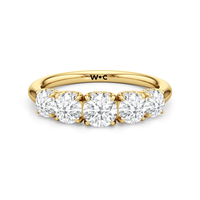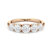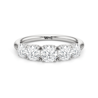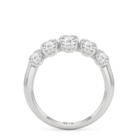 The Cassatt Anniversary Ring is a radiant symbol of commitment and lasting love. It features five tapering diamonds that create a seamless flow of brilliance. Each stone is cradled by a graceful drape halo where additional petite diamonds accent the bottom curve, lending a delicate glow without overpowering the design.