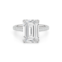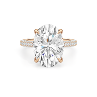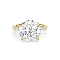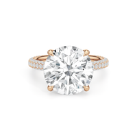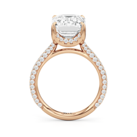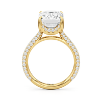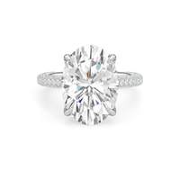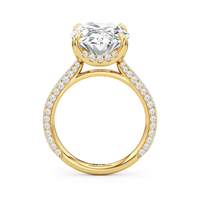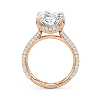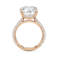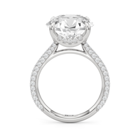 The Cassatt Pave Engagement Ring promises limitless sparkle. Pavé-set diamonds trace the shank, with the radiant and raised shoulders drawing the eye upward towards the center stone. The central gem's visibility and brilliance are enhanced by the drape hidden halo, featuring four claw prongs that captures light from every angle.