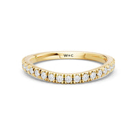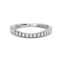 This curved diamond set wedding band is perfectly contoured to complement our ‘The Celestia Ring’ for a simple and sophisticated look.