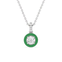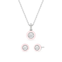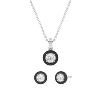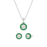 The perfect gift for the one who loves a pop of color. The Ceramic Set includes a pair of round earrings and a necklace with a round pendant. Each piece of jewelry features a round diamond mounted on a four-prong setting and surrounded by a colored ceramic ring. The corrosion-resistant and hard-wearing ceramic provides ample protection for the precious stone.