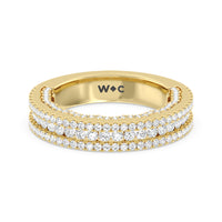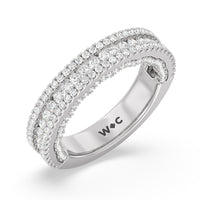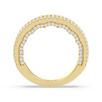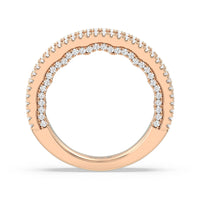 Shimmering pave diamonds cascade down this band to create a timeless beauty that will never go out of style. Designed to be paired with our illuminate scalloped bridge engagement ring for a simple and sophisticated look.