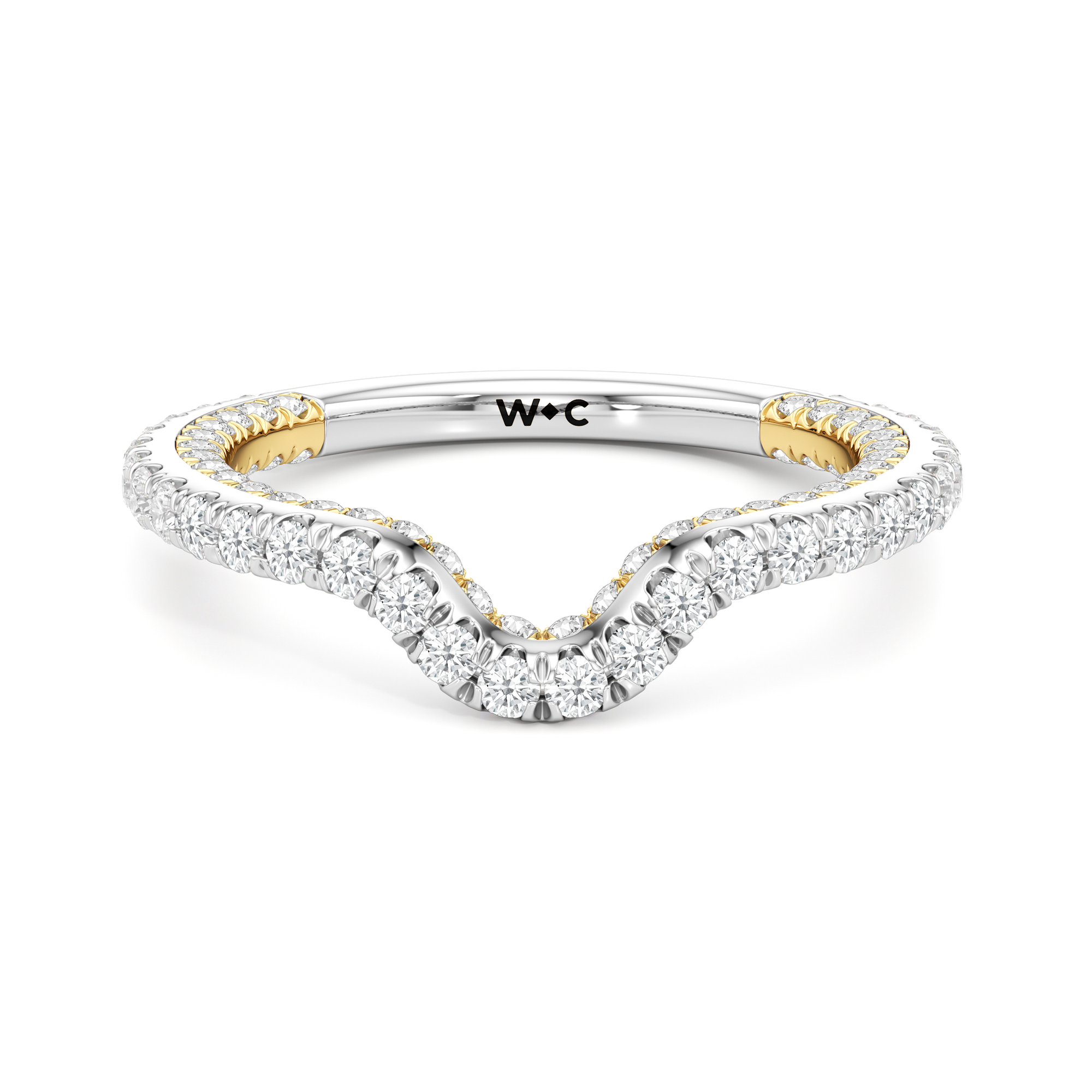 This curved diamond set wedding band is perfectly contoured to complement our the chrysler baguette three stone ring for a simple and sophisticated look.