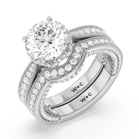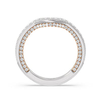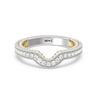 This curved diamond set wedding band is perfectly contoured to complement our the chrysler ring for a simple and sophisticated look.