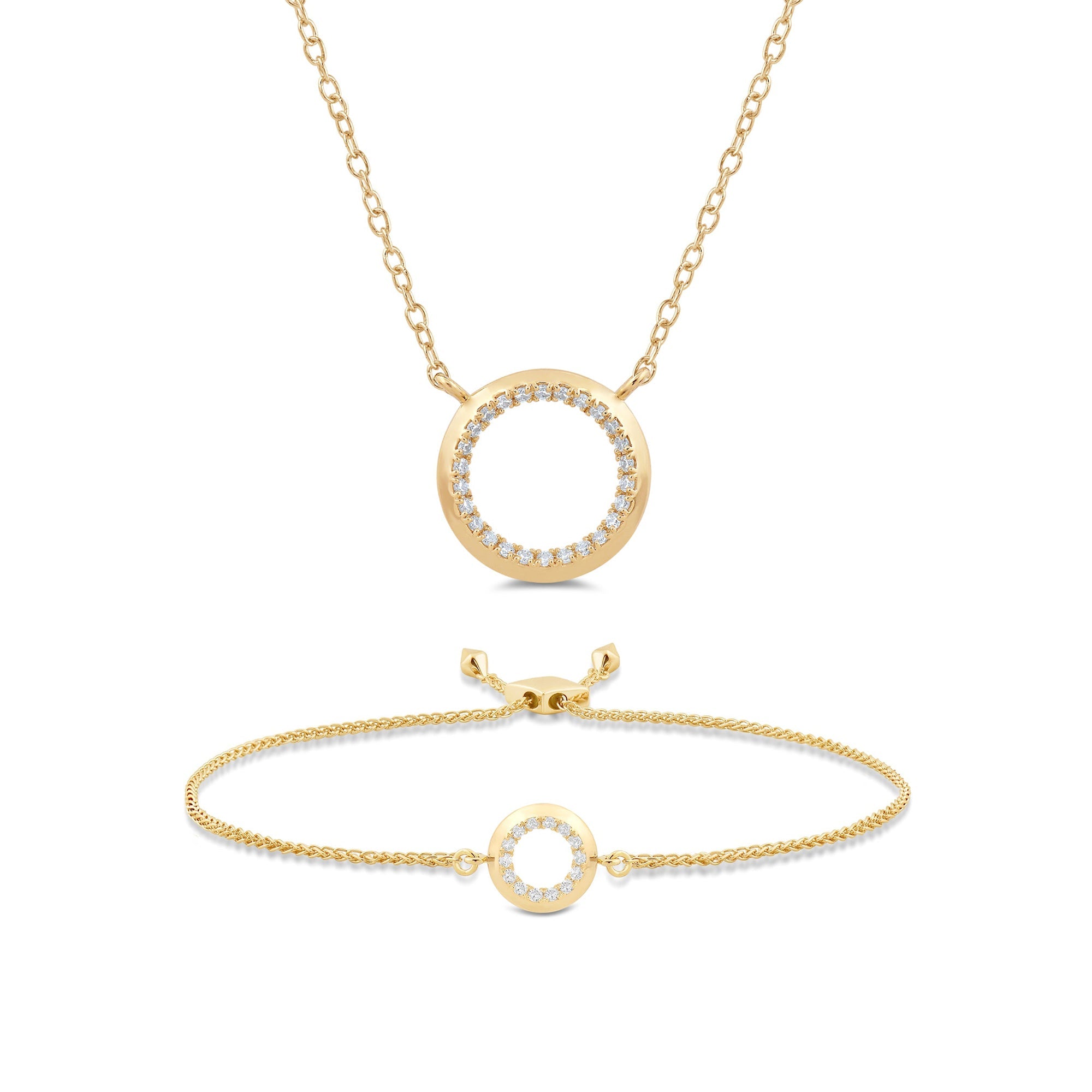 The perfect gift or treat for yourself. The Circle Set is a necklace and adjustable bolo bracelet pairing featuring a circle motif traced by diamonds. With no beginning and end, the sparkling circle motif serves as the perfect mark for a special bond that will never break, an everyday staple for any jewelry collection.