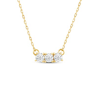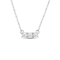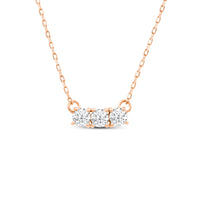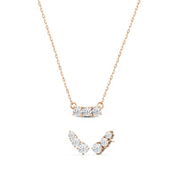 The best things in life comes in threes. The Cluster Set features climber earrings with three diamonds in tapering sizes, set in a slanted orientation, creating an effortless appearance on the ear. The necklace boasts a slightly curved bar of three petite round diamonds that offer a beautiful soft shimmer.