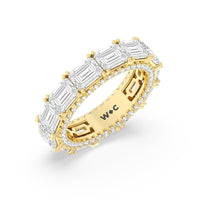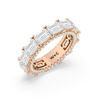 Shining from end to end, this diamond eternity ring serves as a testament to your unbroken bond. This beautiful ring is adorned with oval diamonds that taper in size as they reach the back of the shank. A total of 88 tiny round diamonds trace the inner edge of the shank, offering a glow that shines brightly now and forever.