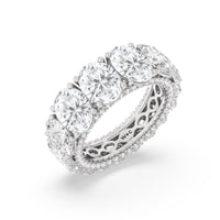 Shining from end to end, let this diamond eternity ring serve as a testament to your unbroken bond. This beautiful ring is adorned with oval diamonds that taper in size as they reach the back of the shank. Tiny round diamonds trace the inner edge of the shank, offering a glow that shines brightly now and forever.