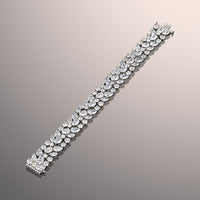 This multi-row diamond bracelet carries eternal elegance. This bracelet features three rows of carefully selected diamonds in pear, round, oval, and marquise cuts. This timeless jewel is undoubtedly the perfect finishing touch to a red carpet gown or a special occasion ensemble.