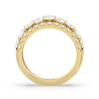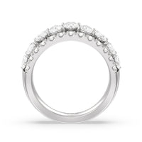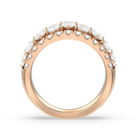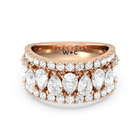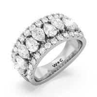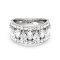 Expect the brilliance of this ring to capture your beloved's heart and catch onlookers' eyes. This anniversary band features a tapering shank with a wide top half that narrows toward the bank. The ring is decorated with a row of pear-shaped stones in an alternating north-south layout. To bump up the glitter factor, the edges are traced with pave-set round diamonds.