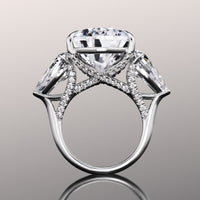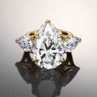 A true masterpiece that is a bright and beautiful symbol of love. Designed with meticulous attention to detail, this iconic ring has a pear diamond center stone that casts its entrancing brilliance atop a polished band with knife-edge style. Two pear diamond side stones flank the prominent central gem for an enviable glow. Each of the three main stones rests on a prong setting with a diamond-encrusted trellis gallery, earning admiration from anyone who sees it.