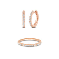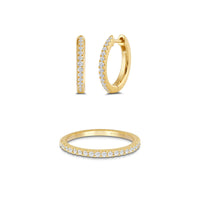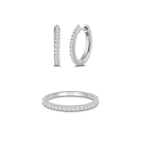 A classic set, without a doubt. This set includes a pair of diamond hoop earrings perfect for daily wear and a half-eternity diamond ring for layering. Pick this timeless diamond jewelry set as a gift for your partner, sister, or mom. The hoop earrings and the ring are an ideal staple and can easily be mixed and matched with other designs.