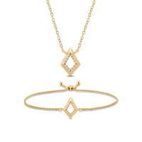 Thoughtful and unique, the Diamond Set is enhanced in unique charm. The set includes a necklace and a bolo bracelet, each detailed with an open-worked diamond motif adorned with petite diamonds on the inner edges. The adjustable bolo bracelets make it a versatile, everyday design.