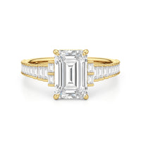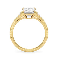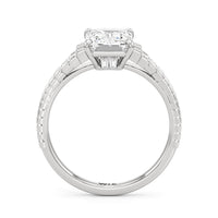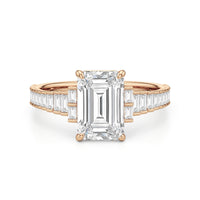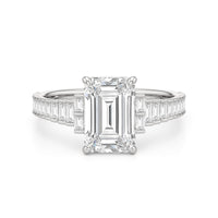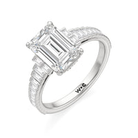 eastern columbiaA quiet homage to the elegant, architectural, and enduring Art Deco style of the Eastern Columbia Building. This ring features a bar-set baguette diamonds rising with rhythm and grace along the band, leading to a step-cut diamond centerstone in a secure basket setting. The step-cut stones, their form and layout, recall the building's bold vertical lines and echo the structure's emphasis on symmetry and geometry. With each reflection, their hall-of-mirrors effect captures the shimmering depth and allure of this Art Deco icon.