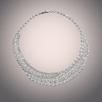 A covetable jewel with a larger than life shine, this multi-layered diamond necklace offers an allure that cascades gracefully across the neckline. Its multiple rows of diamonds in different cuts provide a full-coverage sparkle. Showcasing X carats of diamonds, indulge in a showstopping piece that will enduringly stand out and leave a lasting impression.