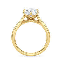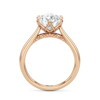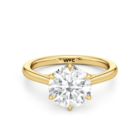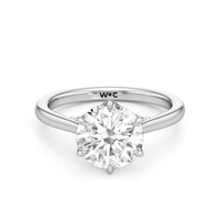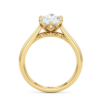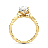 Light in spirit yet refined in form, the Fleur Ring is simple, graceful, and unmistakably French. It features a delicate six-prong setting inspired by a blooming flower, resting atop a softly tapered shank. Swirled engraving along the bridge adds a final flourish of vintage charm.