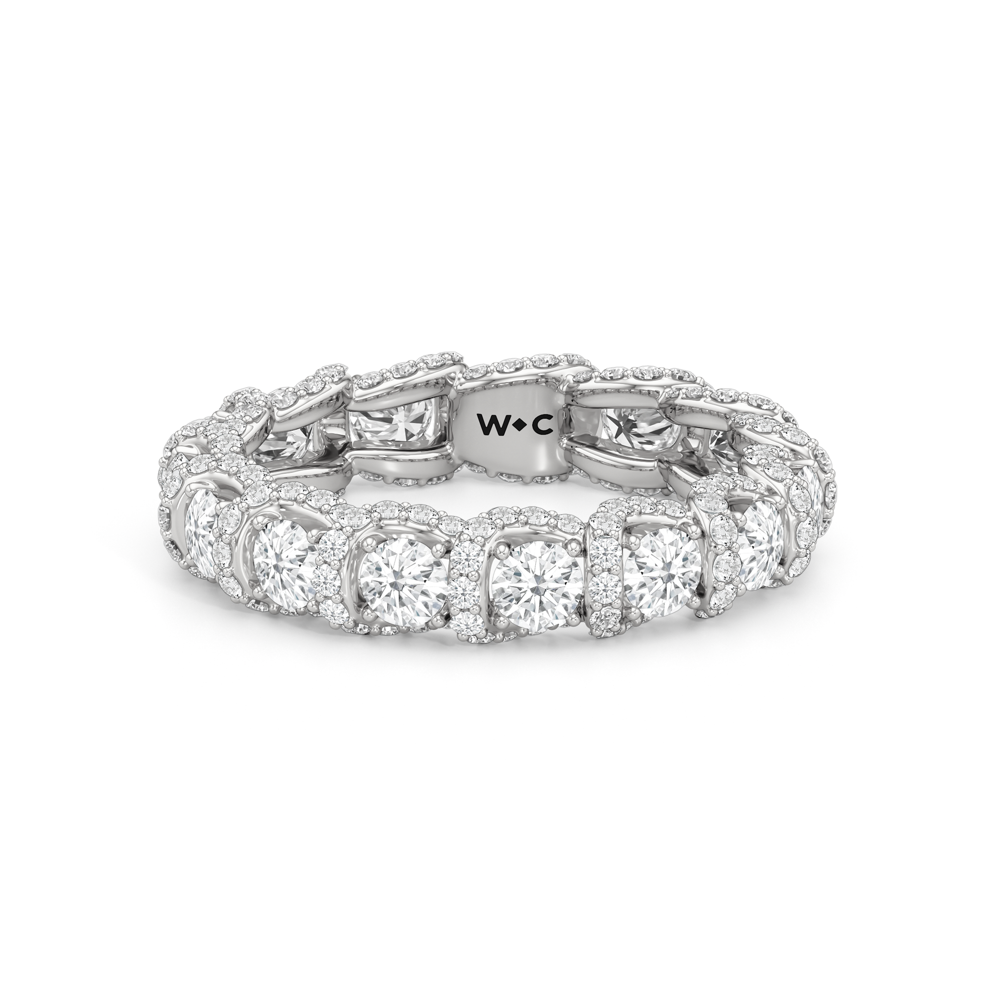 With diamonds arranged in a continuous, flowing rhythm, The Fulton Eternity Ring unfolds its brilliance in smooth, curved cadence. Its sweeping symmetry is balanced yet dynamic, perfect for the discerning eye that appreciates sculptural precision.
