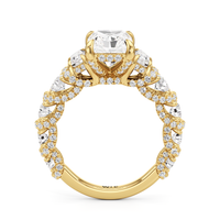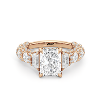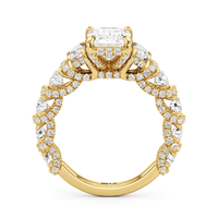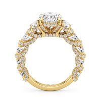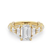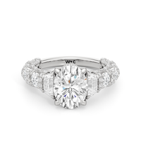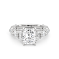 Built on the original Fulton Ring, this version features trapezoid side stones for a sharper, more geometric three-stone silhouette. The look is bold, symmetrical, and unmistakably Fulton.