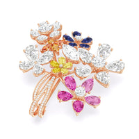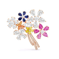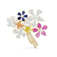 Inspired by the exquisite florals in our Bouquet Collection, this brooch is a radiant tribute to nature’s most cherished blooms. The dazzling interplay of diamonds and colored diamonds creates a striking contrast, enhancing its brilliance and depth. Delicately crafted, this brooch exudes feminine elegance, making it the perfect finishing touch to any ensemble.