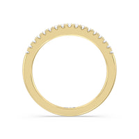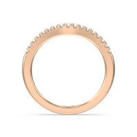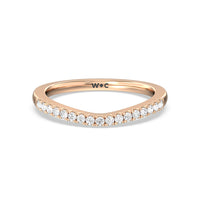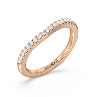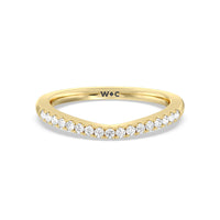 This curved diamond set wedding band is perfectly contoured to complement our illuminate split shank chevron halo engagement ring for a simple and sophisticated look.