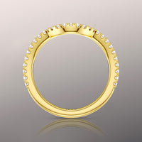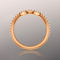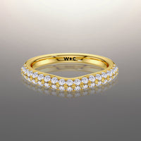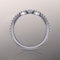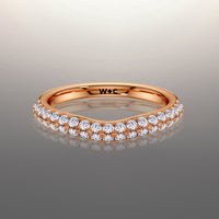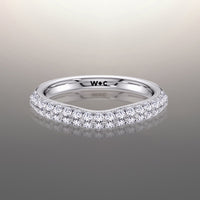 This curved diamond set wedding band is perfectly contoured to complement our the haring ring for a simple and sophisticated look.