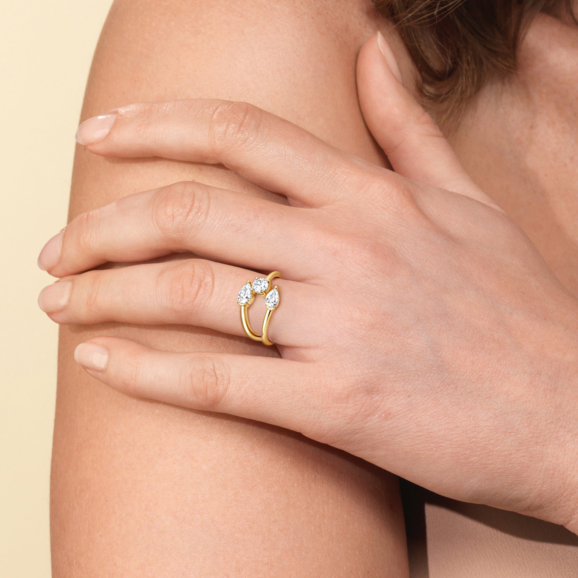 Pear and round diamonds curve past each other in an chic bypass band. Balanced proportions with a gentle, flattering flow. Effortless on its own, elevated in a stack.