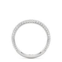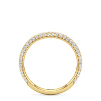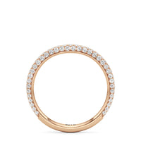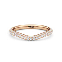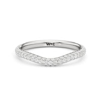 This curved diamond set wedding band is perfectly contoured to complement our The Frankie Three Stone Diamond Wedding Band for a simple and sophisticated look.