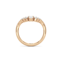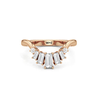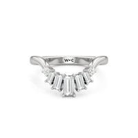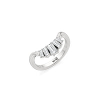 A fashion-forward jewel to add a little bit more whimsical luxury to your style. This diamond ring features a curved notch traced by seven carefully chosen baguette diamonds that gently taper in size. The step-cut precious stones deliver crisp, mirror-like flashes, enhancing the ring's contemporary edge.